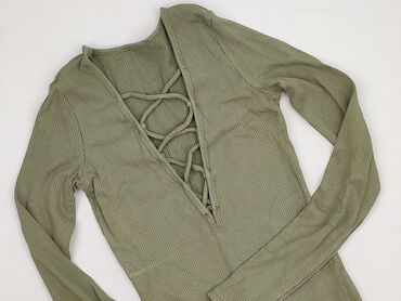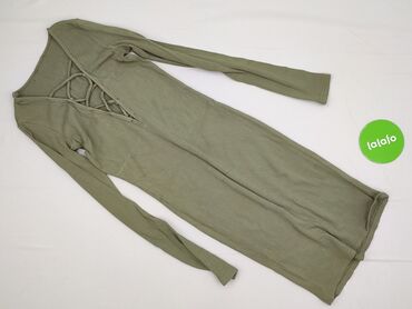 Na co dzieńSukienka damska, prążkowana, khaki/oliwkowa, z długim rękawem.