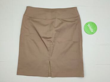 Brązowa spódnica damska o długości do kolan. Charakteryzuje się prostym fasonem, który sprawdzi się w wielu stylizacjach. Wykonana z tkaniny o wyraźnym splocie, co dodaje jej tekstury. Spódnica jes...