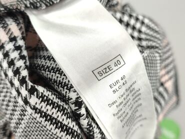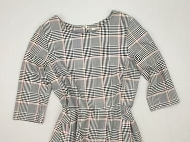 Sukienka ORSAY, rozmiar EU 36 (SLO 38). - Krój: dopasowana góra bez rękawów, rozkloszowany dół z kontrafałdami, długość do kolan. - Wzór: klasyczna krata księcia Walii w odcieniach szarości z cze...