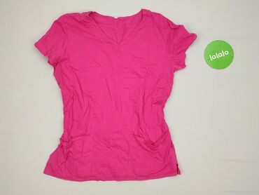 Bluzka damska z krótkim rękawem, róż/fuksja - Fason: kopertowy dekolt w kształcie litery V z delikatnymi marszczeniami przy biuście - Dół: szeroki, prążkowany ściągacz dopasowujący sylwetkę - Rękaw...