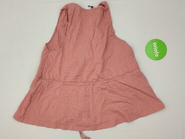 Bez rękawówRóżowa bluzka damska z dekoltem w kształcie litery V, wykonana z materiału przypominającego len, co nadaje jej luźny i przewiewny charakter. Krój bez rękawów sprawia, że jest idealna na cieplejsze dni. W talii znajduje się ściągacz ze sznurkiem, który pozwala na regulację i dopasowanie do sylwetki. Bluzka jest doskonałym wyborem do codziennych, swobodnych stylizacji.