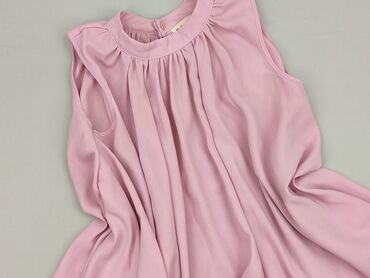 Różowa bluzka bez rękawów - Fason: prosty, luźniejszy krój, zaokrąglony dekolt - Zapięcie: pełny rząd guzików z przodu (kolor dopasowany do tkaniny) - Kieszeń: pojedyncza naszywana kieszonka na le...Stan:
