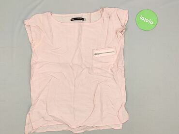 Bluzka damska Reserved, rozmiar S - Kolor: pudrowy róż - Krój: dopasowany, z krótkim rękawem z delikatnym marszczeniem na ramionach - Dekolt: okrągły - Ozdoby: aplikacja z drobnych ćwieków/dżetów ...
