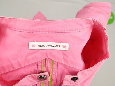 Różowa kurtka damska marki Marc Cain, idealna na co dzień. Charakteryzuje się okrągłym dekoltem bez kołnierzyka oraz zapięciem na zamek błyskawiczny na całej długości z przodu. Wykonana z lekkiego materiału, zapewniającego komfort noszenia. Długie rękawy zakończone są mankietami z zatrzaskami, co dodaje jej praktyczności i stylu. Kurtka ma delikatne marszczenia na materiale, co nadaje jej swobodnego wyglądu. Jest to wszechstronny element garderoby, który sprawdzi się w wielu stylizacjach.