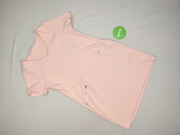 Sukienka/tunika damska w kolorze jasnego pudrowego różu. - Krój prosty, lekko dopasowany, długość przed kolano. - Krótkie rękawy, okrągły dekolt. - Dwie funkcjonalne kieszenie z przodu zapinane na...