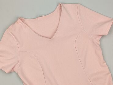 Sukienka Reserved, rozmiar M - Kolor: jasny pudrowy róż - Krój: dopasowana w talii z szerokim, wszytym pasem; lekko rozkloszowany dół - Rękawy: krótkie, z podwinięciem - Dekolt: V z wycięciem z ty...