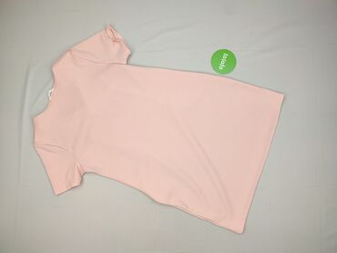 Sukienka damska w kolorze pudrowego różu, o prostym kroju mini. Materiał z tłoczonym, kwiatowym wzorem (róże), przyjemny w dotyku i lekko elastyczny. Skład z metki: 50% poliester, 50% wiskoza. De...Stan: