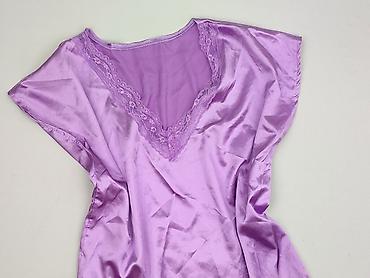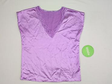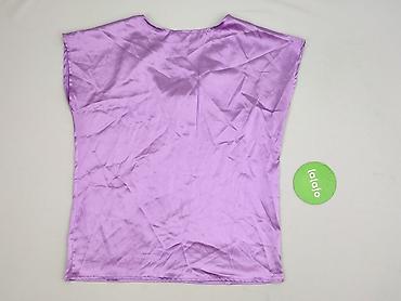 Bluzka damska w kolorze lawendowym - Krój: luźny, oversize; lekko opuszczona linia ramion - Dekolt: w kształcie litery V z delikatną zakładką z przodu - Rękawy: krótkie, szerokie - Dół: zaokrąglon...Stan: