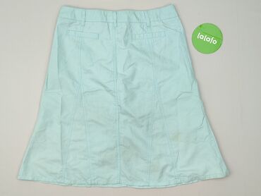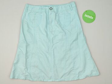Niebieska spódnica damska, rozmiar L - Krój: rozkloszowana, długość do kolan, miękkie marszczenia od pasa - Pas: szeroka, elastyczna guma – wygodne dopasowanie - Materiał: 85% poliester, 15% len (...