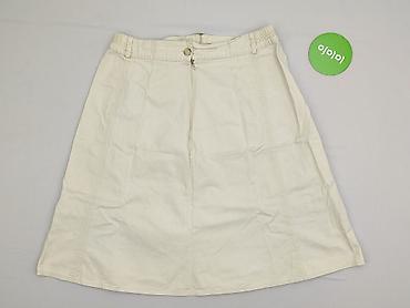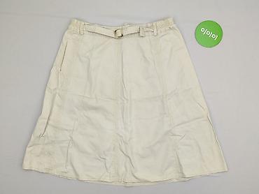Spódnica damska w kolorze beżowym, o prostym kroju do kolan. - Materiał: lekka tkanina bawełniana z domieszką (miękka, nieelastyczna w dotyku) - Talia: szeroka guma – wygodne dopasowanie bez zapięc...