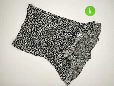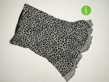 Asymetryczna spódnica damska, rozmiar 42 - Kolor: czarny z jasnym, falistym wzorem i kropkami - Krój: ołówkowy z efektownym, skośnym/asymetrycznym dołem - Zapięcie: z przodu na guzik i suwak - Mate...