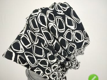 - Wzór: czarno‑biały, geometryczne szkice/obrysy (nieregularne owalne i kwadratowe kształty); falbana w kontrastowym, drobniejszym princie