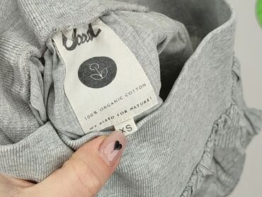 Szara dopasowana spódnica mini, rozmiar XS. - Krój: ołówkowy, lekko zaokrąglony dół (tył delikatnie dłuższy), wysoki stan z szeroką, elastyczną talią bez zapięć. - Materiał: dzianina melanżowa. ...