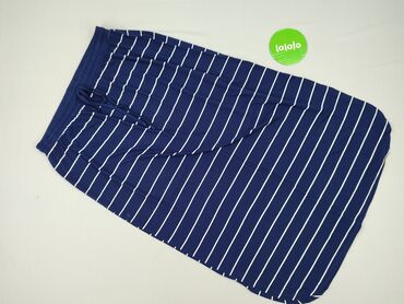 Granatowa spódnica ołówkowa w poziome białe paski. - Krój: ołówkowy, długość przed kolano - Talia: elastyczna, bez zapięcia - Materiał (z metki): 66% poliester, 33% wiskoza, 1% elastan – dzianina ...