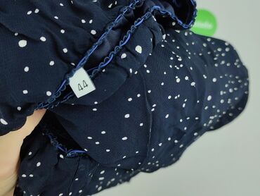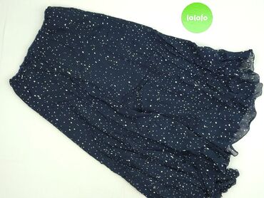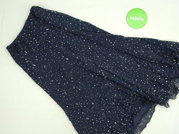 Granatowa spódnica damska z lekkiej tkaniny, rozmiar L. - Fason: rozkloszowana, z delikatnymi falbanami u dołu - Wzór: białe, spiralne kropki na granatowym tle (allover print) - Talia: elastyczna ...