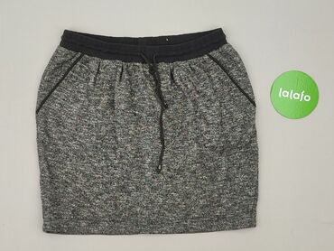 Spódnica dresowa HOUSE Collection - Kolor: szary melanż - Rozmiar z metki: S - Fason: prosty, do kolan; z rozcięciem po boku - Pas: elastyczny ściągacz ze sznurkiem do regulacji (biały, zakończeni...