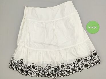 Biała spódnica damska Sinsay, rozmiar M. - Krój: rozkloszowana, warstwowa (falbany), długość mini. - Tkanina: ażurowa haftowana bawełna z podszewką – przewiewna, idealna na lato. - Talia: elastycz...