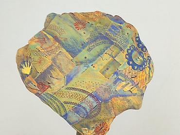 - Wzór: wielobarwny, artystyczny print w stylu patchwork/etno z motywami geometrycznymi i kwiatowymi; odcienie żółci, zieleni, niebieskiego, pomarańczu i czerwieni