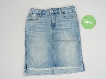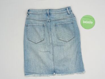 Spódnica jeansowa damska F&F - Fason: mini, lekko w kształcie A - Kolor: klasyczny granat z przetarciami - Materiał: denim (bawełna), średnia grubość, niewielkie spranie - Stan wykończenia: surowo...