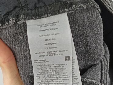 Spódnica jeansowa Pieces - Marka: Pieces - Rozmiar z metki: L - Fason: ołówkowy/mini, długość przed kolano - Kolor: klasyczny niebieski denim z delikatnym spraniem - Materiał: 98% bawełna, 2% elas...