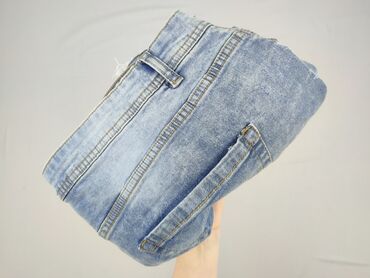 Jeansowa spódnica damska - Krój: ołówkowy/mini, klasyczny 5-pocket - Zapięcie: podwójny guzik + zamek - Kolor: niebieski denim z delikatnym przecieraniem - Tył: dwie kieszenie z dekoracyjnym hafte...Stan: