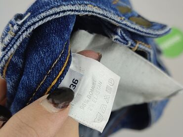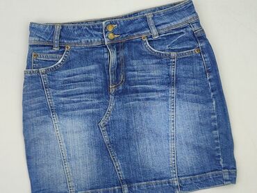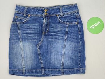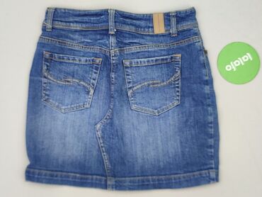Jeansowa spódnica damska Girls Wear - Rozmiar: S (metka) - Krój: mini z szerokim, karczowanym dołem i zakładkami - Fason góry: klasyczny „jeans” – 5 kieszeni, szlufki na pasek, zapięcie na guzik i...