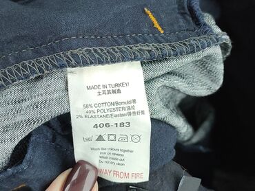 - Materiał: 58% bawełna, 40% poliester, 2% elastan – elastyczny denim