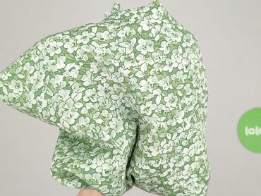 Spódnica SHEIN – model kopertowy z falbanami - Krój: mini, zakładana/kopertowa, wiązana po boku paskiem - Dół i przód wykończone falbaną - Wysoki stan - Wzór: drobne zielone kwiaty/liście na jasny...