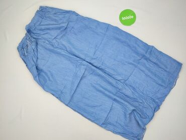 Jasnoniebieska, długa spódnica z przewiewnego materiału (len/bawełna – na zdjęciu widać naturalną fakturę). - Fason: midi/maxi, lekko rozkloszowany. - Talia: szeroki, marszczony pas z gumką zapew...