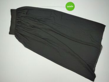 Czarna spódnica midi z lekkiej, półprzezroczystej tkaniny. - Fason: rozkloszowana, lekko asymetryczna (dłuższy tył) - Talia: szeroki, elastyczny pas ze ściągaczem (gumka), dopasowuje się do sylwet...