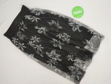 Spódnica damska midi z tiulową, półprzezroczystą warstwą wierzchnią w kwiatowy wzór. - Kolorystyka: czarna baza z wielobarwnymi motywami kwiatów (odcienie czerwieni, beżu, niebieskiego i szarości)...Stan: