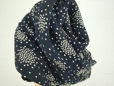 Granatowa spódnica w białe kropki - Fason: zwiewna, rozkloszowana, długość midi - Materiał: lekki, półprzezroczysty szyfon z podszewką (na zdjęciach widoczna delikatna falująca struktura) - Talia:...Stan: