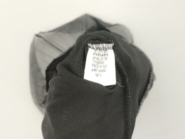 - Materiał: dzianina z połyskującą nitką, lekko elastyczna; na wierzchu delikatny, czarny tiul tworzący efektowne, zwiewne wykończenie