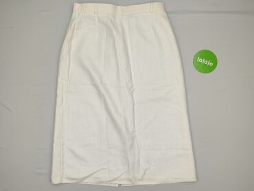 Spódnica ołówkowa w kolorze ecru/kremowym. - Fason: klasyczny ołówek, wysoki stan, długość za kolano - Zapięcie: z tyłu na suwak i guzik - Talia z szerokim paskiem, modelujące zaszewki z przodu i ...