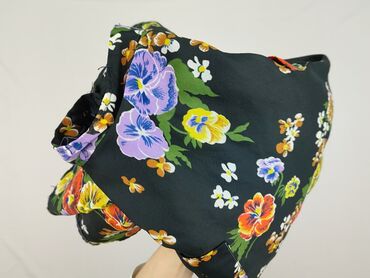 - Wzór: gęsty, kwiatowy nadruk na czarnym tle (fiolet, żółć, pomarańcz, zieleń, biel)