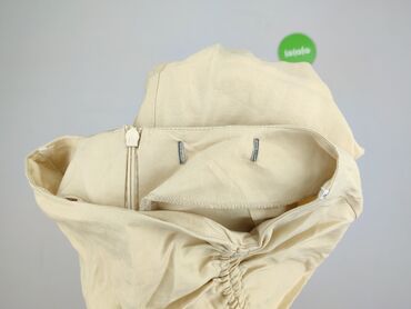 Jasna, lniana spódnica H&M midi. - Kolor: naturalny beż/ecru - Fason: prosta z ciekawym marszczeniem biegnącym wzdłuż przodu i delikatnym rozcięciem u dołu - Długość: midi/za kolano - Tkanina: prz...