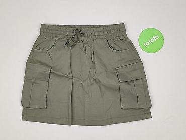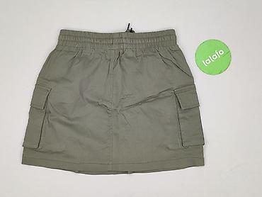 Spódniczka damska mini w kolorze khaki/oliwkowym, fason cargo. - Materiał: gładka, lekko sztywna tkanina bawełniana (widoczne podwójne przeszycia). - Krój: prosty, przed kolano (długość ok. 41–42 ...Stan: