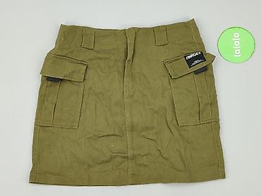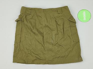 Spódniczka damska mini w kolorze khaki/oliwkowym, fason cargo. - Materiał: gładka, lekko sztywna tkanina bawełniana (widoczne podwójne przeszycia). - Krój: prosty, przed kolano (długość ok. 41–42 ...