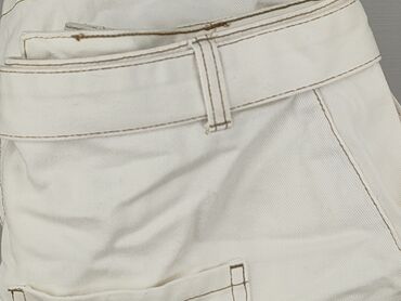 Biała spódnica mini o kroju denimowym - Kolor: kremowa/biała - Fason: prosty, mini, z delikatnym rozcięciem po bokach u dołu - Zapięcie: klasyczny guzik i zamek z przodu - Pas: ze szlufkami na pas...