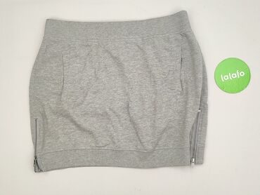 Szara spódnica mini H&M - Fason: ołówkowy, elastyczny; delikatne marszczenia po lewej stronie, lekko zawijany/przekładany dół z przodu - Kolor: szary melanż - Rozmiar z metki: M (EU) - Skład mater...