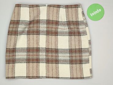 Spódnica mini marki H&M w beżowo-szarą kratę. Wykonana z mieszanki poliestru, wełny i akrylu, co zapewnia komfort noszenia. Idealna do stylizacji na co dzień, zarówno z eleganckimi, jak i casualowy...