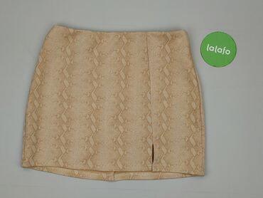 Spódnica damska mini – beż/nude, XS - Fason: ołówkowy, kopertowy przód z delikatnymi marszczeniami z boku - Długość: mini (przed kolano) - Talia: elastyczna gumka, brak zapięcia - Materiał: 95% ba...
