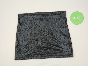 Czarna spódnica mini z elastycznej dzianiny - Fason: dopasowana tubowa spódnica mini, lekko marszczona u góry i przy dolnym ściągaczu - Pas: szeroki, pleciony, elastyczny; z przodu ozdobna klamra ...Stan: