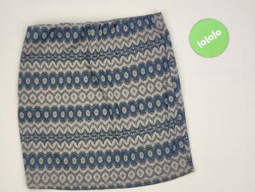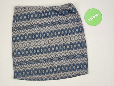 Spódnica damska typu ołówek, dzianinowa, w granatowo-niebieski, geometryczny wzór. - Fason: dopasowany, długość przed kolano (mini/krótka). - Talia: elastyczna gumka, bez zapięcia. - Materiał: 7...Stan: