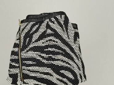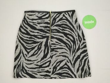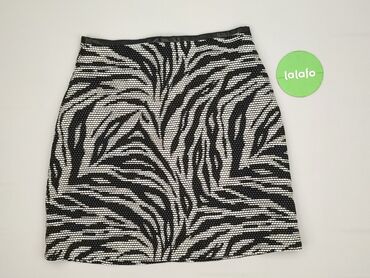 Spódnica mini H&M Divided, rozmiar XS - Fason: prosta mini, lekko rozkloszowana panelami - Wzór: czarno‑biały, hipnotyczny/zwierzęcy (zebra), mocno graficzny - Materiał: tkanina elastyczna – wierz...