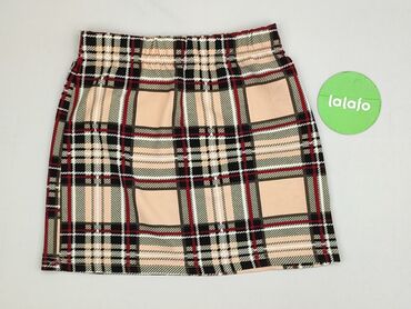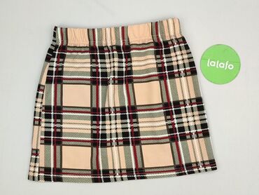Spódnica damska Sinsay, rozmiar S - Krój: mini, lekko dopasowana, z przeszyciami modelującymi - Wzór: klasyczna krata w odcieniach beżu, brązu, bieli i oliwki - Wysoki stan z szeroką listwą w pasi...
