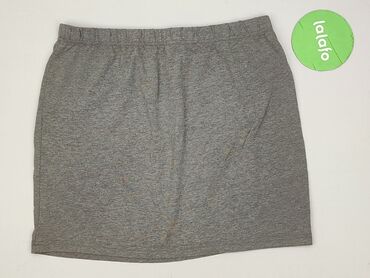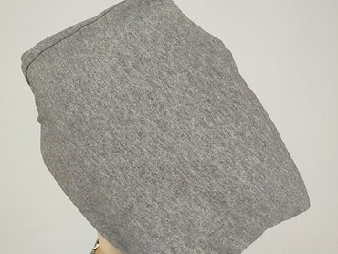 Szara, dzianinowa spódnica mini. - Krój: prosty, ołówkowy, długość przed kolano - Talia: elastyczna guma w pasie - Kieszenie: dwie boczne - Materiał: miękka, elastyczna dzianina dresowa (bawełna z...