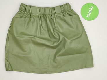Spódnica z eko‑skóry, kolor khaki/oliwkowy. - Krój ołówkowy, długość przed kolano - Szeroka, marszczona talia na gumce - Pasek do przewiązywania w szlufkach, możliwość regulacji obwodu - Dwie duże...