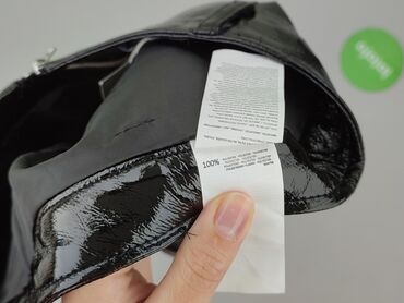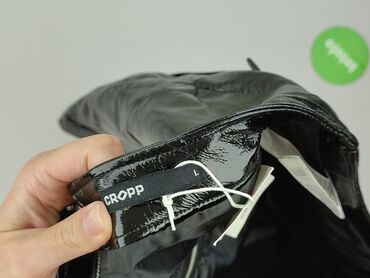 Spódnica mini CROPP - Kolor: czarny - Materiał: 100% poliuretan (efekt skóry) - Krój: ołówkowy/mini, gładki - Zapięcie: suwak z tyłu na środku - Detale: pionowe przeszycia modelujące; niewielkie r...Stan: