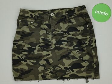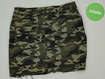 Spódnica mini w militarny wzór moro - Krój: prosta mini, długość ok. 41 cm (widoczna miarka na zdjęciu) - Szerokość w pasie: ok. 36 cm na płasko (mierzone na zdjęciu) - Materiał: grubsza bawełnian...
